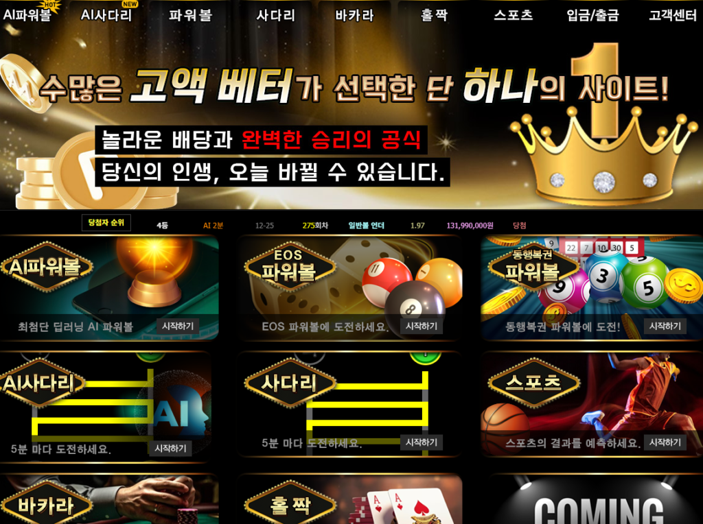 이곳은 하루 입금액 무제한으로 광고되고 있는데, 실제로 이용해 보니 입출금 제약이 거의 없습니다. 그래서 고액 유저들 사이에서 ‘맛집’으로 소문난 이유를 알겠더군요. 저는 소액으로 즐기는 편이지만, 큰 금액을 다루는 분들에게는 이보다 더 안전하고 편한 곳은 없을 겁니다.